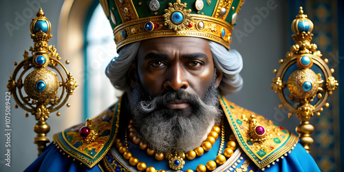 Close Up Portrait of Reyes Magos Festive Makeup Regal Appearance Copy Space for Magazine Advertisements Banners Perfect for Holiday Promotions Photo Stock Concept