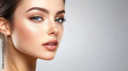 close up portrait of young woman, white, smooth, advertising concept for cosmetics, spa, beauty clinic