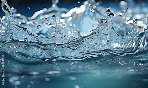 close up rain water drop falling to the floor. wave water surface. Generative AI