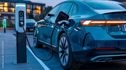 Close up shot of an electric car s high tech charging port