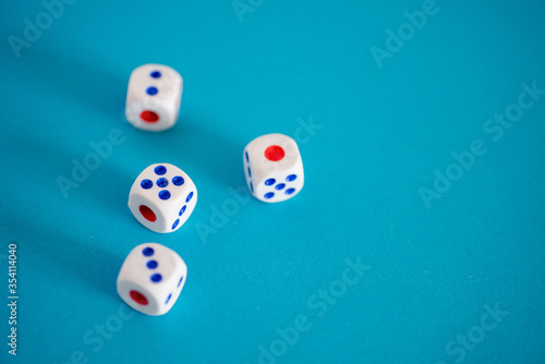 Close up shot of dice against blue background