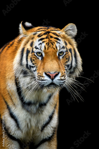 Close up Siberian or Amur tiger on black background