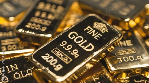 Close Up Stacks of many shine gold bars.