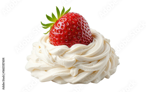 Close up Strawberry on whipped cream transparent on white background