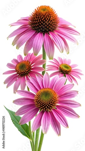 Close up vibrant coneflowers with pink petals and prominent orange centers