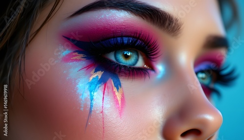 Close up Vibrant Eye Makeup Colorful Artistic Cosmetics Blue Eyes Pink and Blue Shades