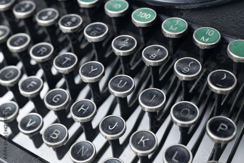 Close up view of an old typewriter keys. Selective focus