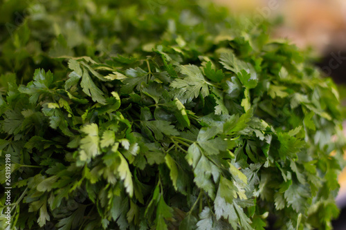 Close up view of fresh green parsley leaves