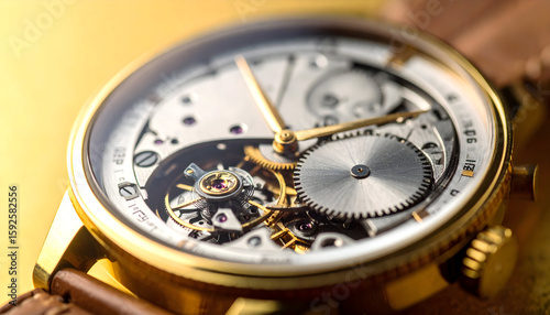 Close Up View of Gold Mechanical Watch with Exposed Gears