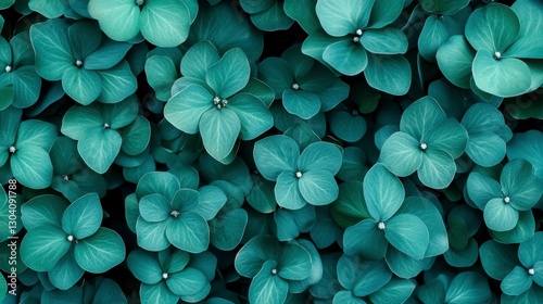 Close Up View of Lush Teal Green Leaves Forming a Dense Natural Pattern