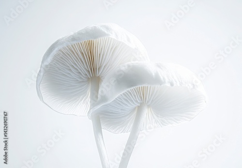 Close up View Of Two White Mushrooms On A Bright White Surface