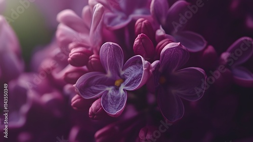 Close up view of vibrant purple lilac blossoms