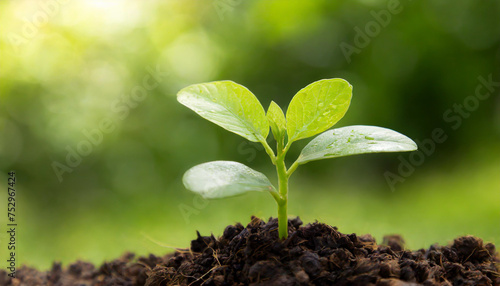 Close up Young plant growing over green background