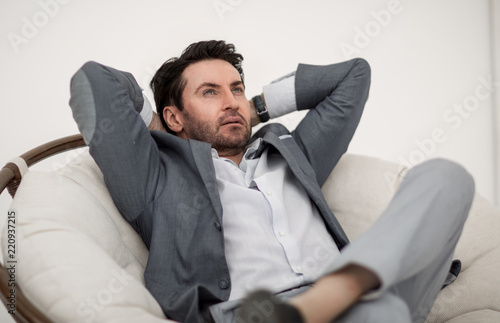 close up.businessman sitting in a comfortable chair.