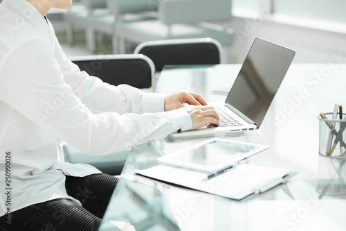 close up.businessman working on laptop in modern office