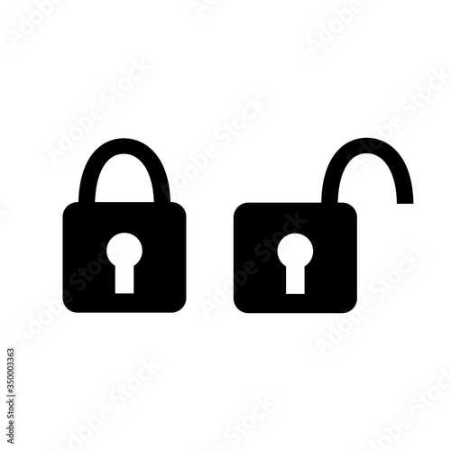 Closed and opened doorlock, padlock signs. Vector illustration.