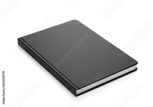 Closed blank black hardcover book on a white background