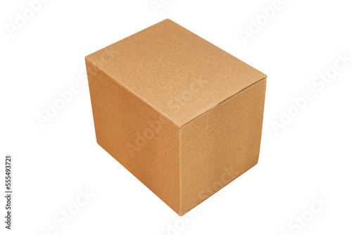 Closed cardboard box is isolated on white background.