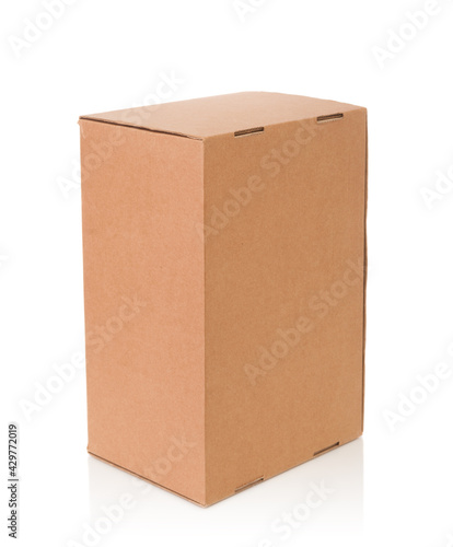 Closed cardboard box isolated on white background