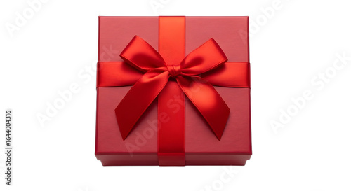 Closed gift box with satin ribbon, isolated on white background, clean presentation for celebration designs.