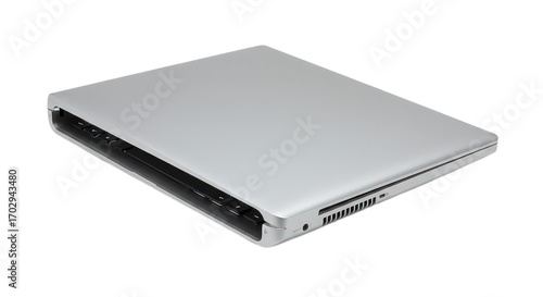 Closed laptop showcasing its slim and compact design, isolated on transparent background, ideal for travel and storage