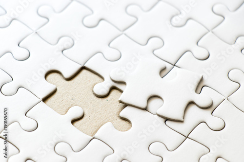 Closed up background of white plain jigsaw wait missing piece to match or fulfill