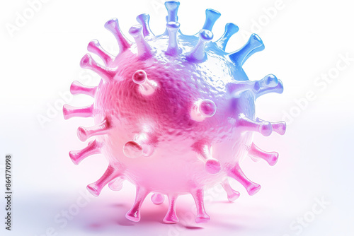 Close-up 3D rendering of a colorful virus model. Perfect for science, healthcare, and medical research visual content.