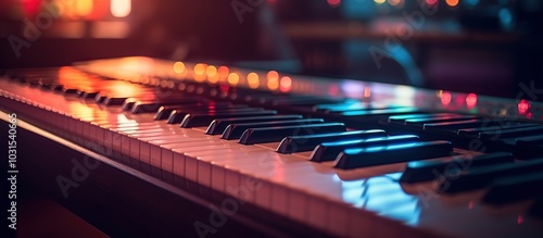 closeup a piano keys on a blurred background with bokeh