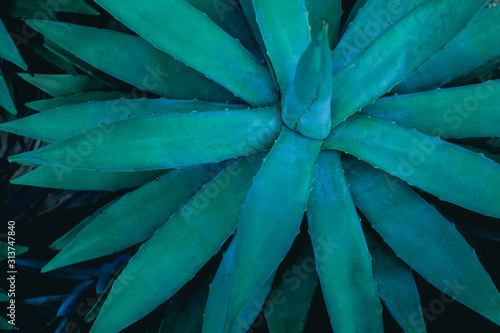 closeup agave cactus, abstract natural pattern background and textures, dark blue toned