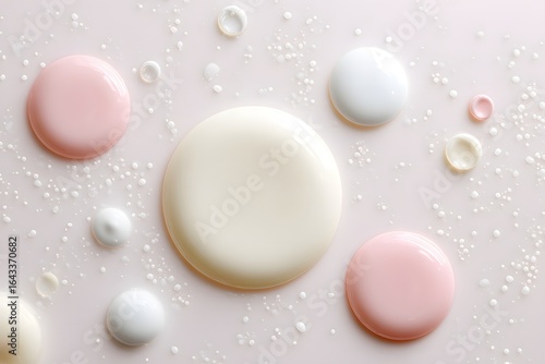 Close-up artistic exploration of colorful creamy drops with a soft minimalist background