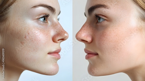 Close-up before-and-after image of a patient's nose and chin, showing visible blackhead removal and smoother skin after deep pore cleansing, Photorealistic, Natural Lighting