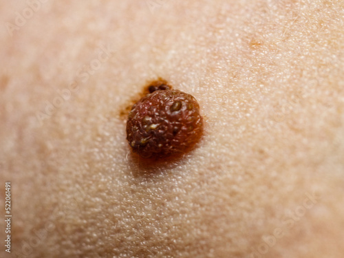 Closeup brown mole on skin.