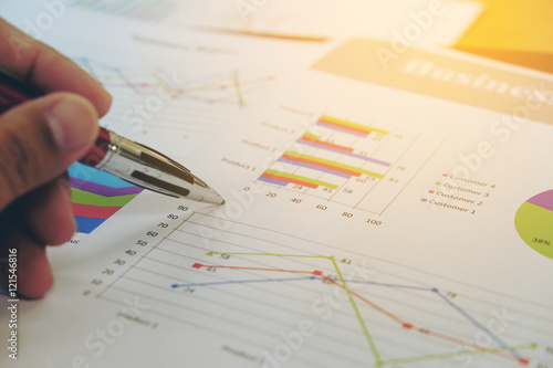 Close-up business people With Pen Analyzing Statistic stock market report Chart On Paper