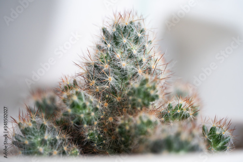 close-up Cactus macro shot in flowerpot. Cactus flower macro shot. prickly cactus in details