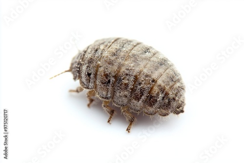 close-up captures a pill bug securely rolled into a ball, showcasing its intricate segmented body and armored appearance, perfect for defense against threats.
