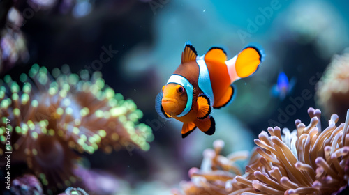 closeup clown fish in the coral reef on ocean