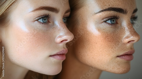 Close-up comparison of a woman's face, focusing on Botox's effect on wrinkles and melasma spot reduction, before-and-after transformation, High-Resolution, Bright Lighting