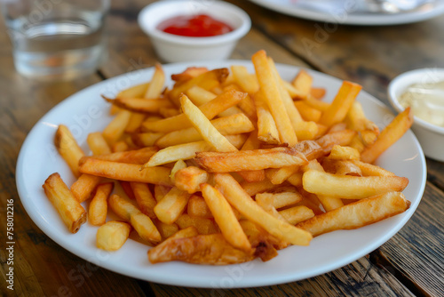 Close-Up Delicious French Fries Served On A Plate In Food Restaurant Interior, Fries Food Photography, Food Menu Style Photo Image