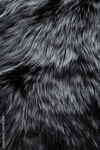 Closeup, Detailed Texture of Soft, Luxurious Black Fur. Abstract Background, Copy Space.