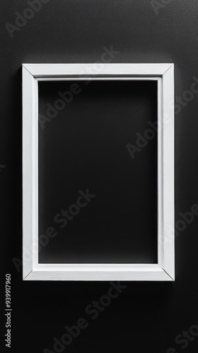Close-up empty white frame on minimalist black background
