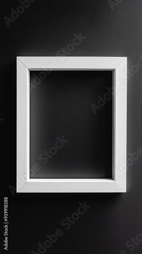 Close-up empty white frame on minimalist black background