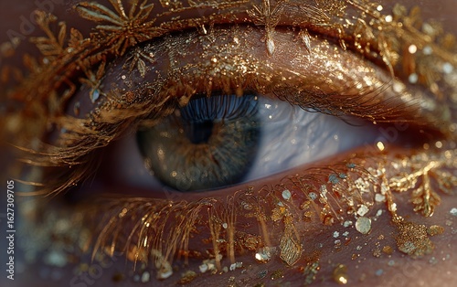 Close-up eye, gold glitter