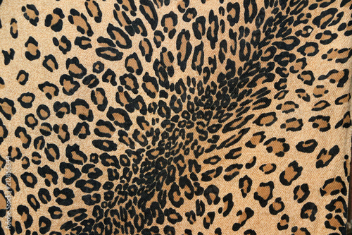 Closeup fabric pattern of leopard tiger, in black brown orange and cream color.