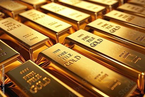 Closeup gold bar arrangement in a row, Business Gold future and financial concept.
