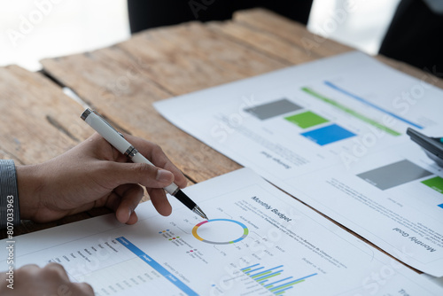 close-up hands image, Professional Asian male and female financial consultant or analyst working with them team, brainstorming and analyzing financial data on the report together in the office