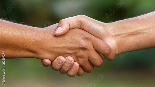 Close-up handshake between african and caucasian individuals.