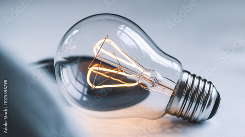 Close-Up Incandescent Light Bulb with Glowing Filament, Vintage Design & Modern Energy Efficiency on White Background