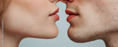 Close-Up Kiss Between Young Couple with Soft Skin and Tenderness