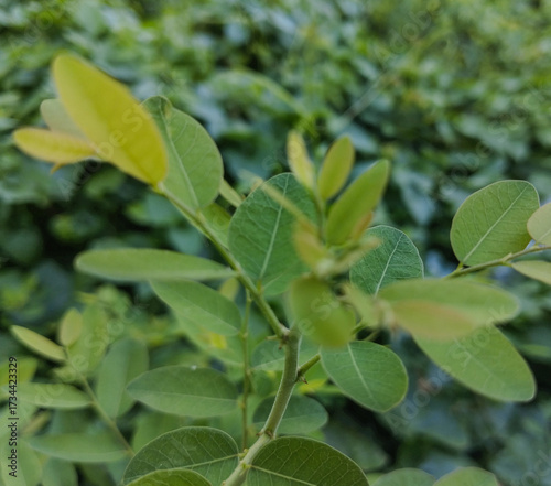 Close-up Macro of Bright Green New Leaves and Fresh Growth Against a Soft Bokeh Nature Background.