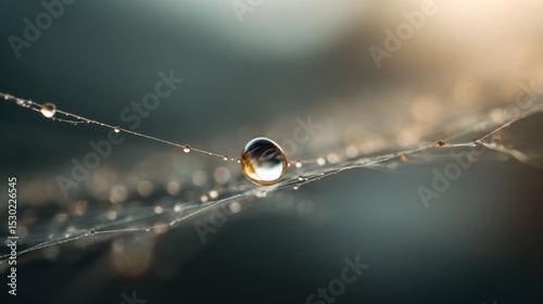 Close-up, macro shot of a single dewdrop meticulously balanced on a delicate spiderweb, soft morning light, intricate details.
